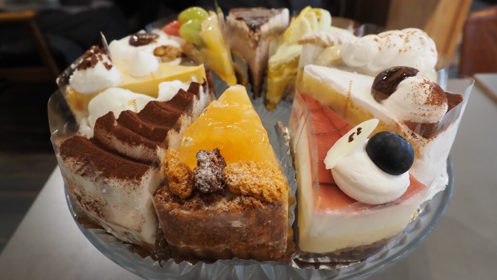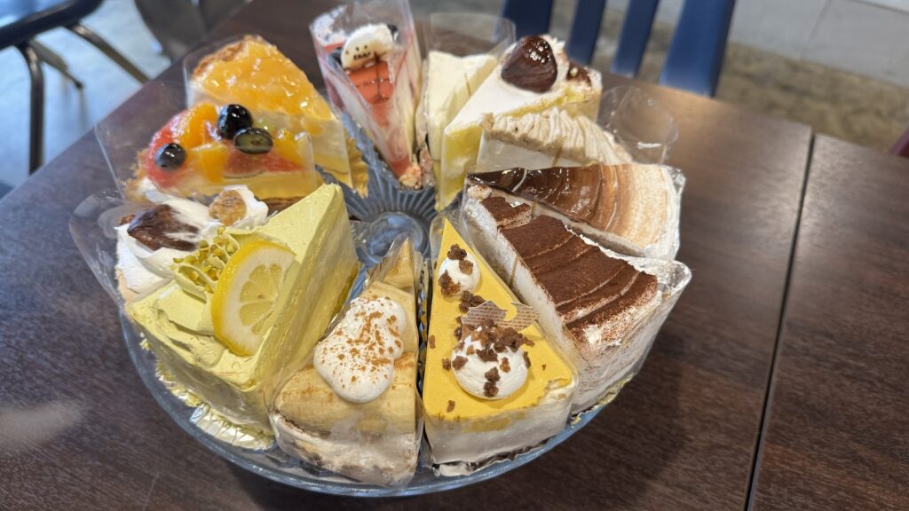 食後にスタッフの方が持参してくれる、豊富な種類のケーキ🍰