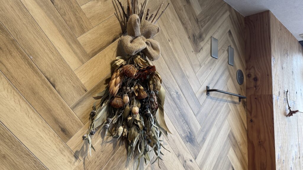 今回は初めて3階で家族そろって食事を楽しみましたが、オシャレなドライフラワーやチョークアートが壁面を彩っておりとても素敵でした。