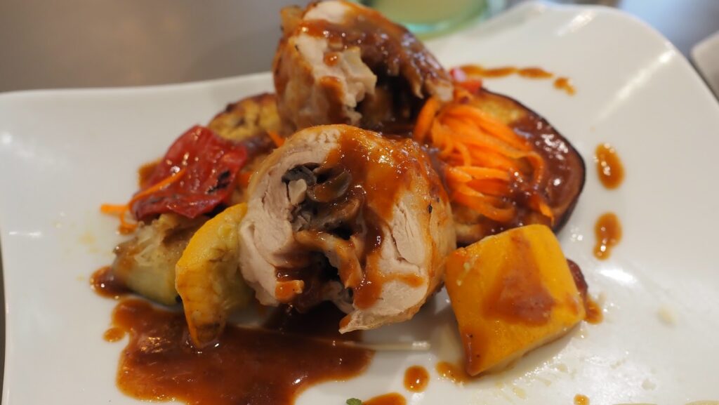 また別の日に訪問した際は、「そら豆とベーコンのクリームソースのパスタ」と「チキンのガランティー二」をチョイス🐼